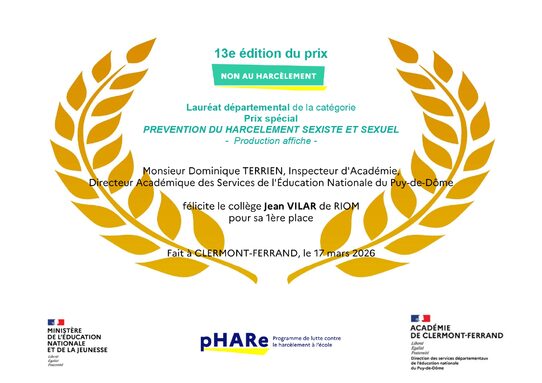 Les élèves de 5ème C lauréat(e)s du prix départemental et félicité(e)s par l'Inspecteur d'Académie!